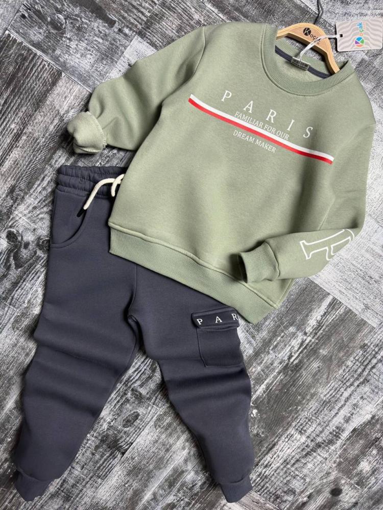 طقم ولادي أنيق وعصري مثالي للنشاطات اليومية. يتميز بتصميم جذاب يجمع بين الراحة والأناقة، حيث يتكون من كنزة ناعمة بأكمام طويلة مع بنطال رياضي مرن. مصنوع من خامات عالية الجودة توفر نعومة ولمسة دافئة لطفلك. تصميمه يجمع بين الألوان العصرية والتفاصيل المميزة التي تمنح طفلك مظهرًا أنيقًا في جميع الأوقات.