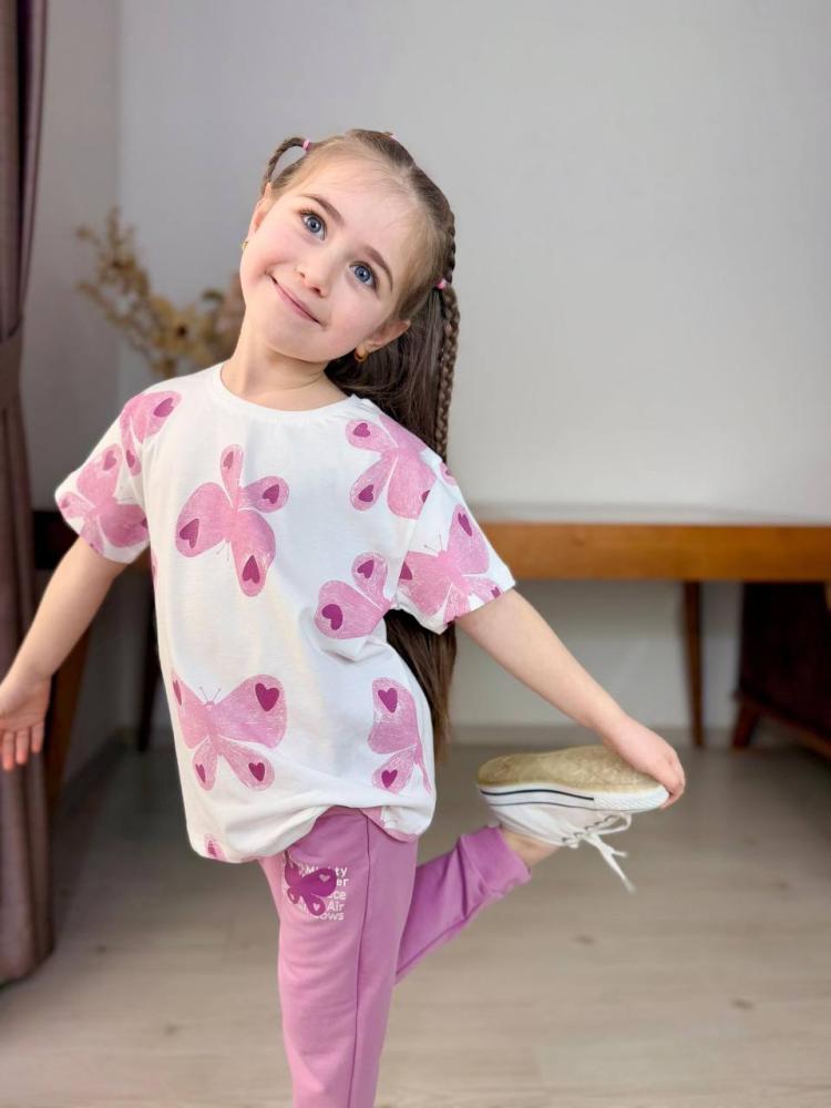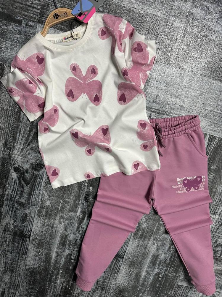 كم قصير بنقش فراشات وبنطلون طويل خامة مريحة جودة وصناعة تركية