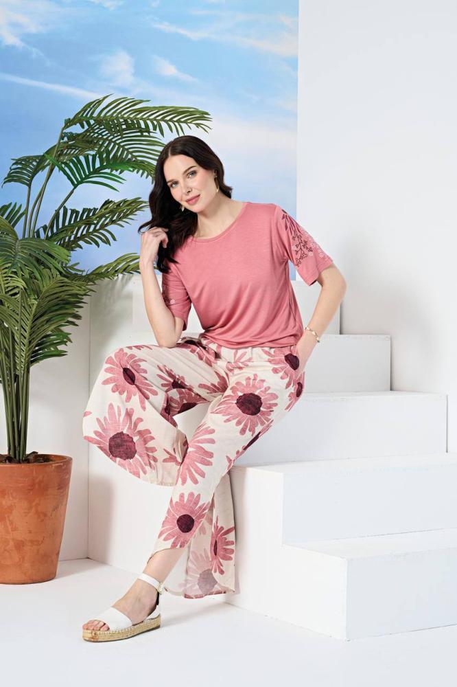 • اسم المنتج : طقم نسائي وردي بنقشة زهور
